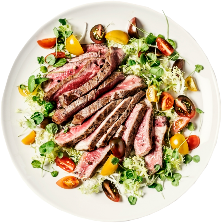 Lettuce, cucumber, watercress, tomatoes, coriander, spring onion, chopped pork, boiled eggs, egg dressing.